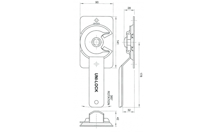 This latch suits either a 90° keeper (1131.90) or a straight keeper (1131.92). These keepers are sold seperately.